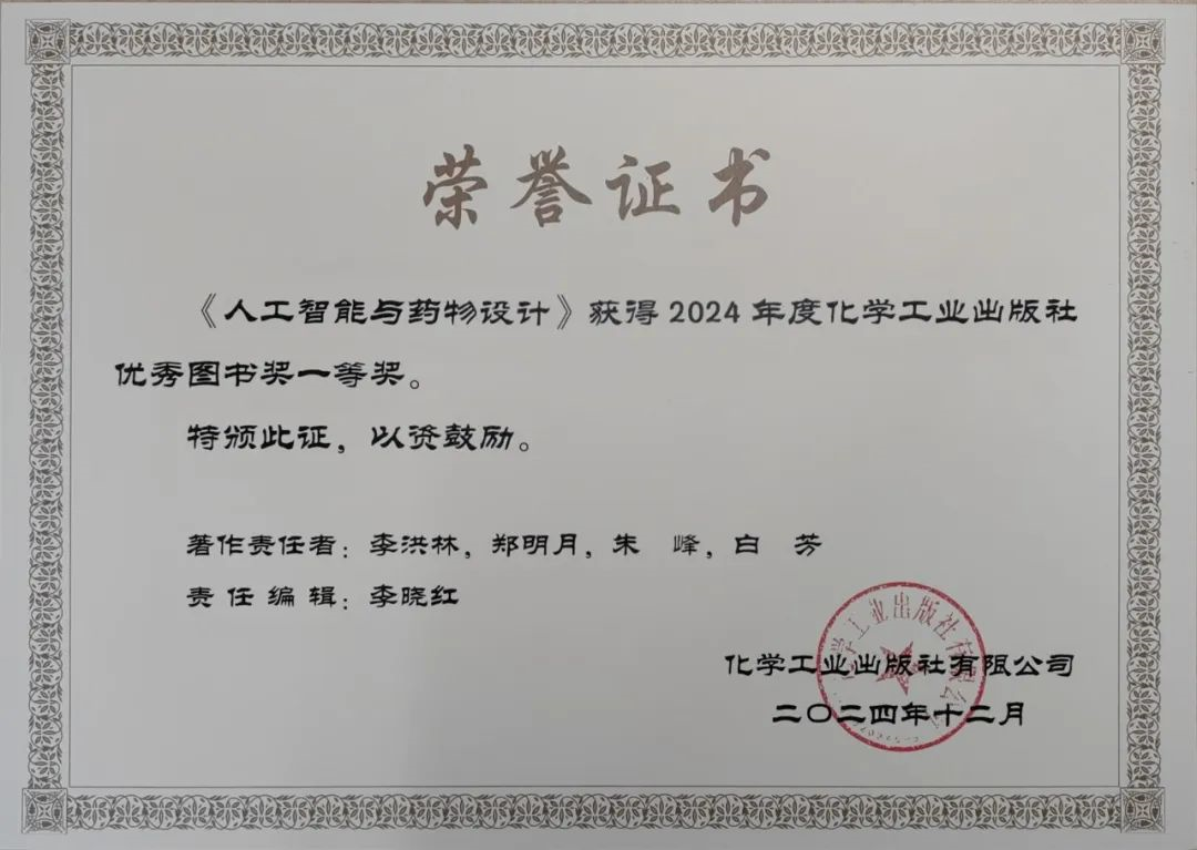 近日,上海市药学会人工智能药学专委会多位委员主编的《人工智能与药物设计》一书在2024年度化学工业出版社优秀图书奖评选中脱颖而出,荣获一等奖!该书由上海市药学会人工智能药学专委会主委李洪林教授、副主委郑明月研究员担任主编,副主委白芳研究员担任副主编;副主委付伟,委员罗小民、刘琦、李诗良、周水庚、刁妍妍等与国内多位此领域专家共同撰写完成。